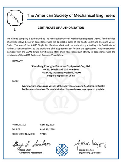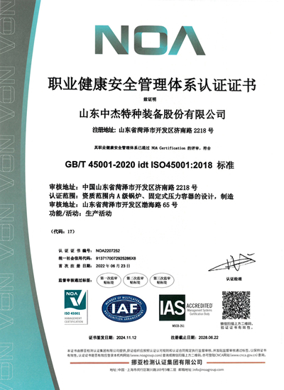 山東中杰特種裝備股份有限公司(原菏澤鍋爐廠有限公司)成立于1984年,公司先后被評為“高新技術(shù)企業(yè)”,“山東省專精特新企業(yè)”,“山東省瞪羚企業(yè)”,“山東省制造業(yè)單項(xiàng)冠軍企業(yè)”,2022年8月被工信部認(rèn)定為“國家專精特新小巨人企業(yè)”等榮譽(yù)。公司擁有自營進(jìn)出口權(quán),具有A級鍋爐制造許可及A2級壓力容器制造許可資質(zhì),A2級壓力容器設(shè)計(jì)許可資質(zhì),B級鍋爐安裝和GB2類、GC2類壓力管道安裝許可資質(zhì)及三級機(jī)電設(shè)備安裝專業(yè)承包資質(zhì),是中國鍋爐與水處理協(xié)會會員單位、中國化工裝備協(xié)會會員單位和山東省裝備制造協(xié)會理事單位,并通過了ISO9001質(zhì)量管理體系、ISO14001環(huán)境管理體系、OHSAS18001職業(yè)健康安全管理體系認(rèn)證和美國ASME/U2認(rèn)證。
